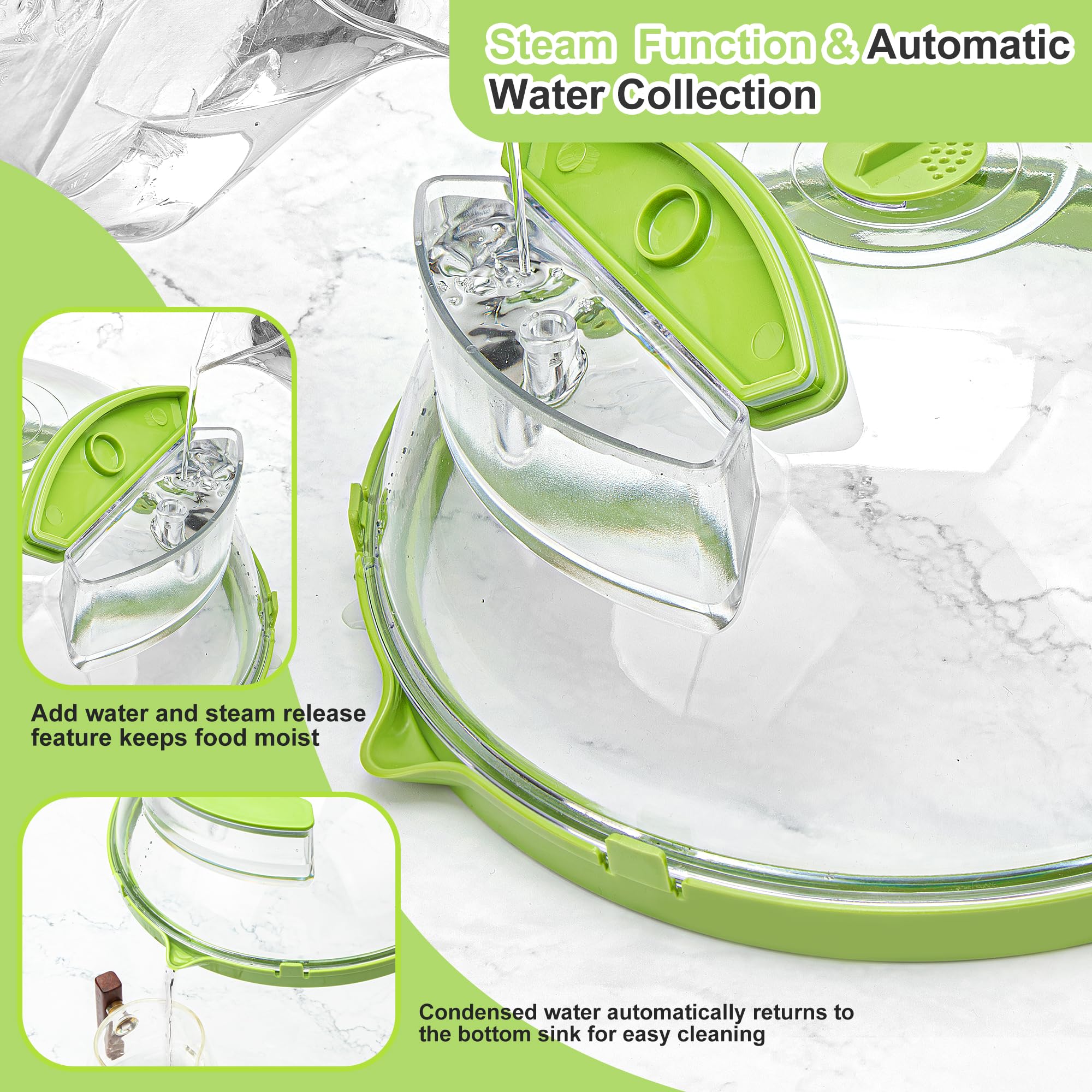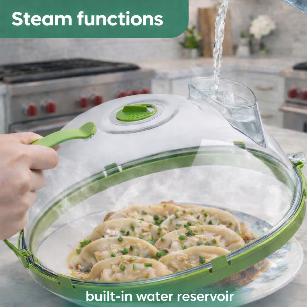 Just pour a little water into the built-in reservoir, pop your food inside, cover it with the SPLATTER GENIE, and microwave. The steam will cook your food evenly while keeping its nutrients and flavor intact.